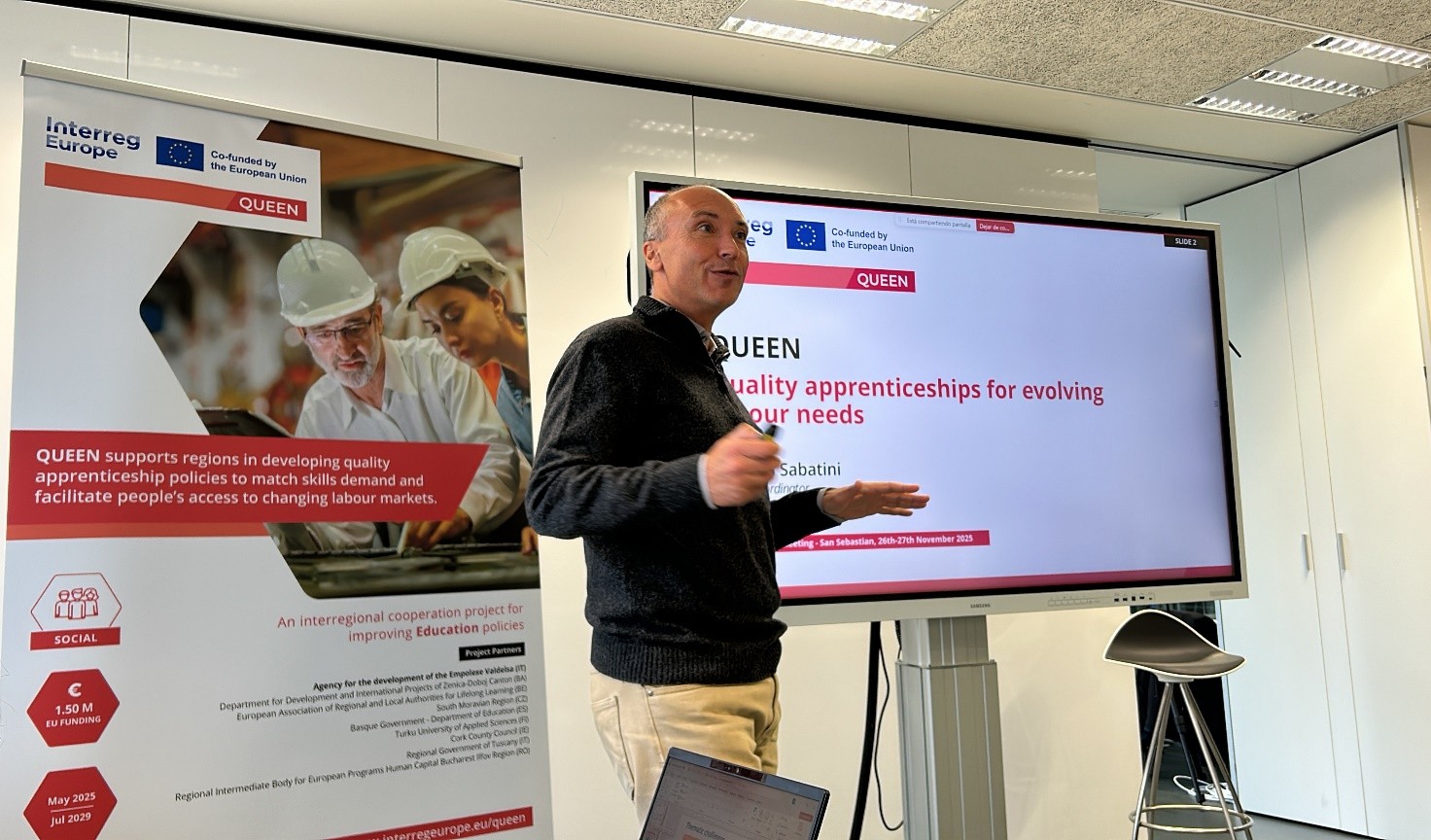 ASEV ha coordinato e partecipato al secondo meeting del progetto QUEEN – Quality Apprenticeships for Evolving Labour Needs, tenutosi il 26 e 27 novembre 2025 a San Sebastian, nei Paesi Baschi. L’incontro ha riunito partner europei e stakeholder locali, ospitati da TKNIKA (centro di ricerca applicata per la formazione professionale dei Paesi Baschi), iTalent (Istituto Basco per il Talento nella VET) e IVAF (Istituto Basco per l’Apprendimento Futuro nella Formazione Professionale). Due giornate dedicate all’analisi delle sfide territoriali, allo scambio di soluzioni innovative e allo sviluppo di modelli capaci di rafforzare i sistemi di apprendistato in tutta Europa.